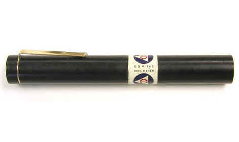 Quoting CPG 1-30: "The dosimeter provided for general operational use is the CDV-742 which has a measurement Range of up to 200 roentgens. Until these were available in sufficient quantity, the CDV-730 with a range of 0 to 20 roentgens and the CDV-740 with a range of 0 to 100 roentgens had been furnished. They are still usable. Dosimeters resemble a fountain pen in size and shape. The CDV-742 can be identified by its bronze or gold colored pocket clip. The CDV-742 high range dosimeter is the standard for use in shelter, WER [Weapons Effects Reporting] Stations, emergency service organizations and vital facilities. They would also be used by the millions of civil preparedness workers that would be needed for recovery operations during the postattack period when emergence from shelter is possible."
