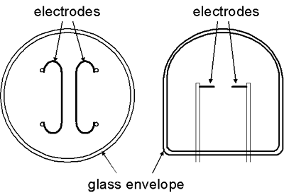 The instrument employs what is referred to as the Edison radiation detection tube, a dome-shaped glass-walled tube approximately 1.25” high and 1” in diameter that is located in the lower front (i.e., nose) of the instrument. The tube’s two electrodes are symmetrical and placed parallel to each other in the center of the tube. A modified GM detector, the tube was originally developed to respond to ultraviolet radiation between 190 and 290 nanometers but it was soon recognized that it would also respond to X-rays and gamma rays.