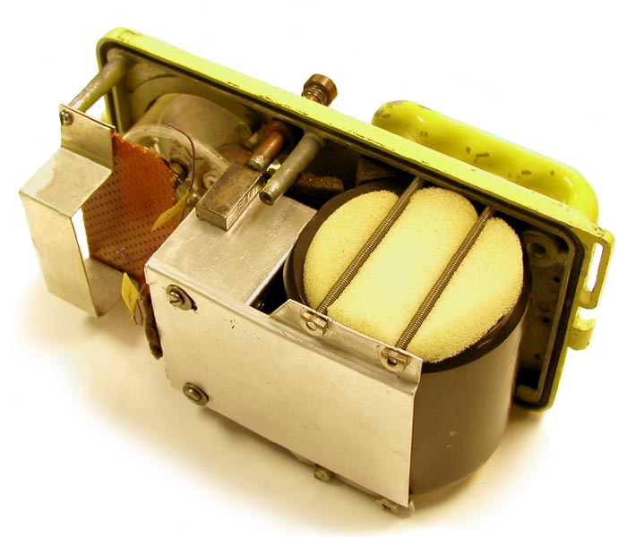 The sensing element is a heavy metal cased cylinder (ca. 3” in diameter and 3.25” long) located in the rear bottom of the case.