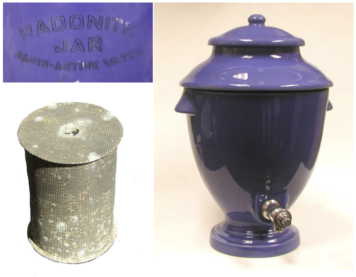 The Revigator itself was a "radioactive water crock." A jar made of radium-containing ore, it held several gallons of water, came with its own spigot, and had the following instructions on the side: "Fill jar every night. Drink freely... when thirsty and upon arising and retiring, average six or more glasses daily." The radon produced by the radium in the ore would dissolve overnight in the water. In effect, it served as a "perpetual health spring in the home."